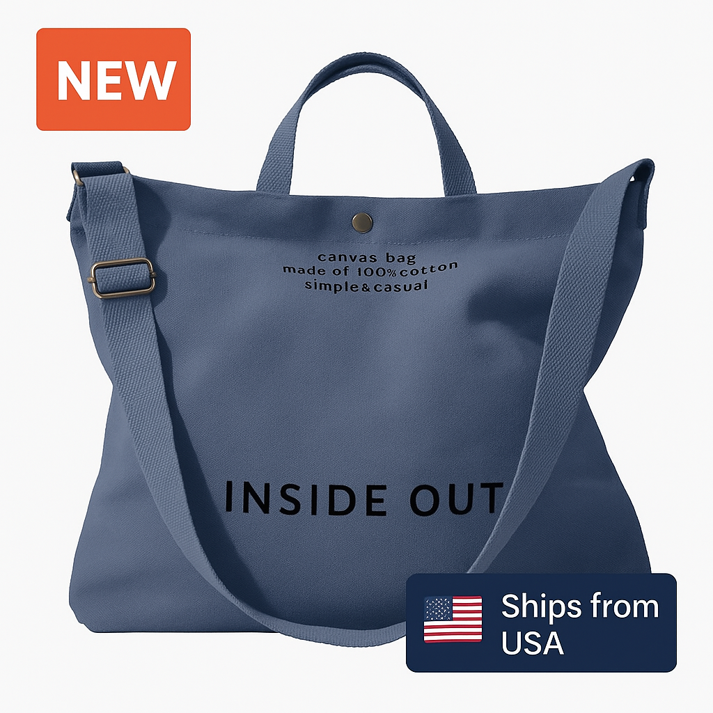 Turn your everyday style inside out with this minimalist-chic cotton canvas tote. Made from 100% cotton, this bag is soft yet durable, designed to carry your essentials with ease. It features a spacious main compartment, sturdy dual handles, and an adjustable crossbody strap for hands-free convenience. Whether you’re heading to the store, school, or a casual day out this bag has your back.